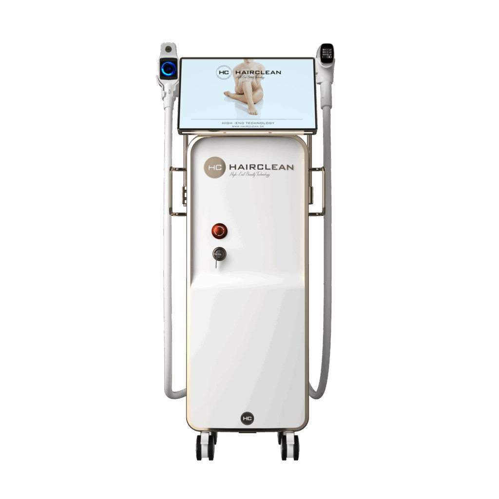 Erleben Sie die neueste Generation der Haarentfernung: Unsere HAIRCLEAN 3D Laser Technologie kombiniert drei Wellenlängen (755nm, 808nm, 1064nm) in einem ultraleichten High-End-Handstück für maximale Effektivität bei jedem Haar- und Hauttyp – schnell, sicher und nahezu schmerzfrei.